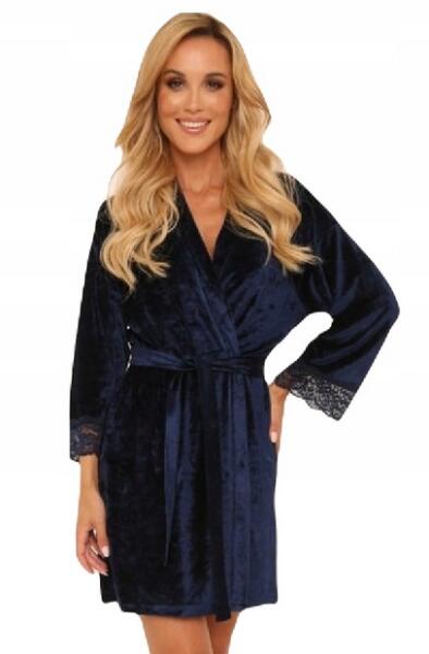 De Lafense Női Fürdőköpeny, Size M, bambusz, sötétkék, virágos csipke (32926804570204200)ALLEGRO