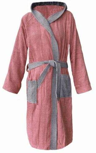 Homelevel Pamut Fürdőköpeny - 4XL - Rózsaszín/Szürke