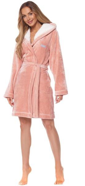 Meleg női fürdőköpeny kellemes puha anyagból. A kapucni puha mikroplüsssel bélelt. Derékban övvel van megkötve, mindkét oldalán praktikus zsebek találhatók. A fürdőköpeny meleg meleg érzést ad a testnek a fürdőzés után. Királynőnek fogod érezni magad. Vigye magával nyaralásra vagy wellness tartózkodásra. Anyaga: 100% poliészter