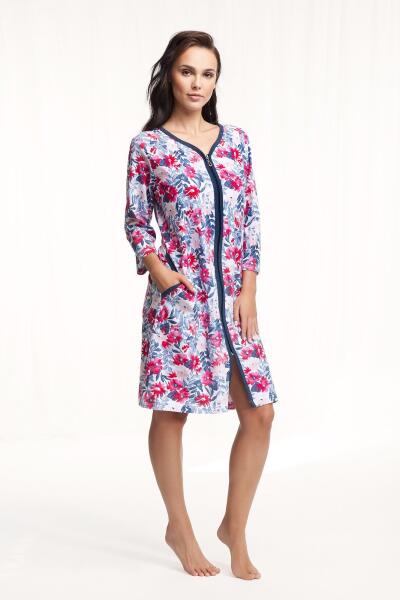 Női pamut fürdőköpeny hosszú ujjal. A fürdőköpeny cipzárral van megkötve, oldalt zsebekkel. A fürdőköpeny tiszta pamutból készült. Anyaga: 100% pamut