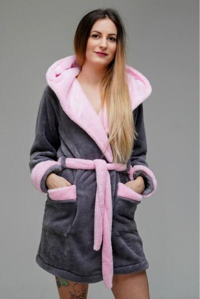 Sötétszürke manó mintájú hímzett (Dupla Kapucnis) egy pihe-puha köntös, wellsoft anyag lágy érintése, melybe egy élmény belebújni.