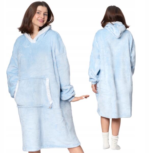 Takaró Pulóver Oversize Egyszínű Vastag Takaró Pulóver XXL Kék Szőrme FürdőköpenyALLEGRO
