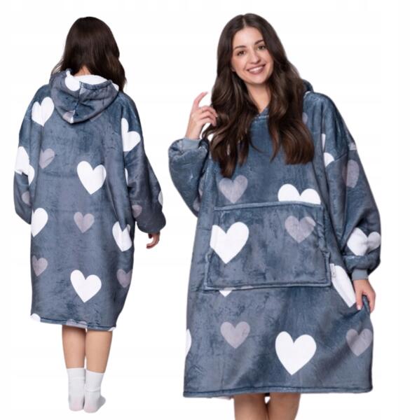 Takaró Pulóver Oversize Fürdőköpeny Vastag Takaró Pulóver 2in1 XXL Szívek Szőrme Pulóver Takaró