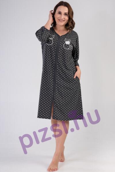 Extra méretű cipzáros női köntös: szép megjelenés kényelmes viselet csinos középhosszban nyomott mintával szín és formatartó. Anyaga puha tapintású: 50% pamut 50% poliészter.