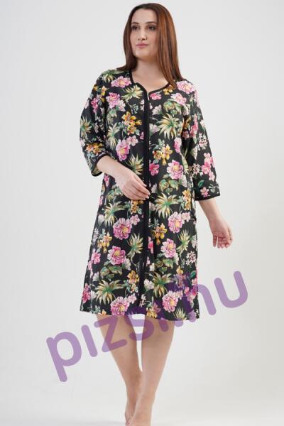 Extra méretű cipzáros női köntös: szép megjelenés kényelmes viselet csinos középhosszban nyomott mintával szín és formatartó. Anyaga puha tapintású: 100% pamut.