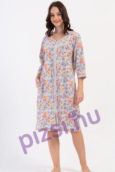 Extra méretű cipzáros női köntös: szép megjelenés kényelmes viselet csinos középhosszban nyomott mintával szín és formatartó. Anyaga puha tapintású: 100% pamut.