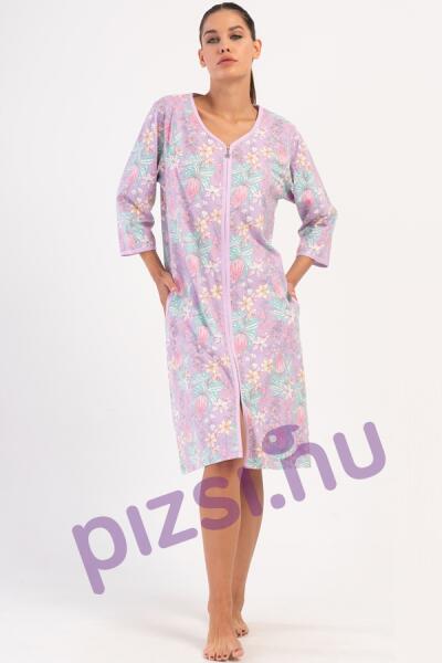 Extra méretű cipzáros női köntös: szép megjelenés kényelmes viselet csinos középhosszban nyomott mintával szín és formatartó. Anyaga puha tapintású: 100% pamut.