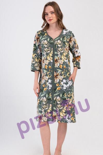 Extra méretű cipzáros női köntös: szép megjelenés kényelmes viselet csinos középhosszban nyomott mintával szín és formatartó. Anyaga puha tapintású: 100% pamut.