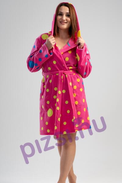 Extra méretű Polár női köntös: zsebel elátott középhosszban. Puha tapintású extra minőségű meleg hatású polár anyagból. Anyaga: 100% polieszter.
